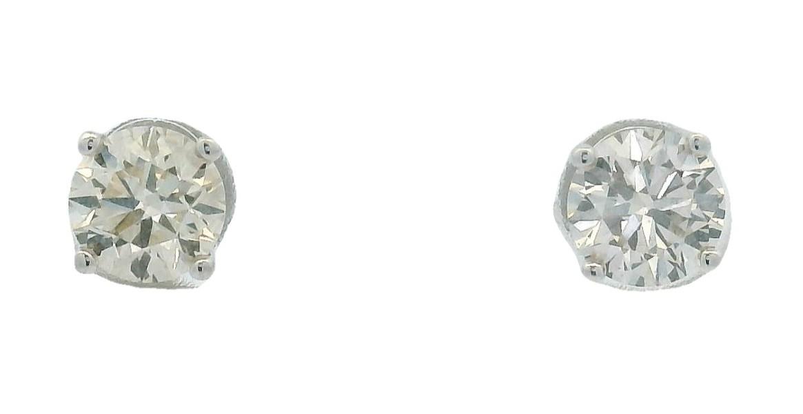 A PAIR OF 18K WHITE GOLD CLASSIC SOLITAIRE BRILLIANT CUT DIAMOND STUDS TOTALLING 1.00CT