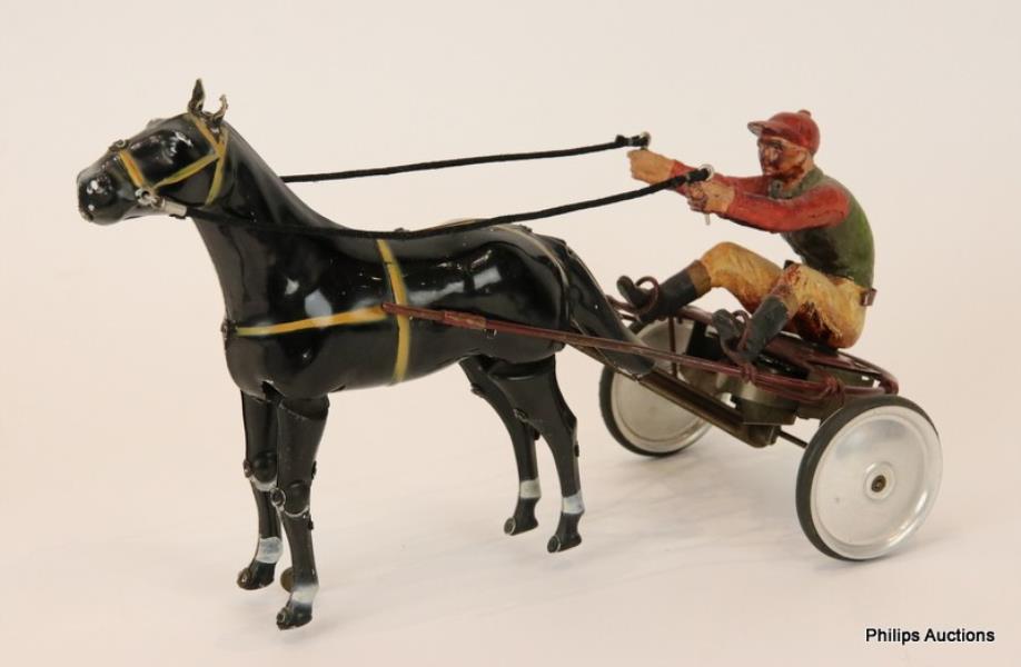 A BREVETTI BORDOLI BOLOGNA 'SULKY' WINDUP HORSE AND DRIVER