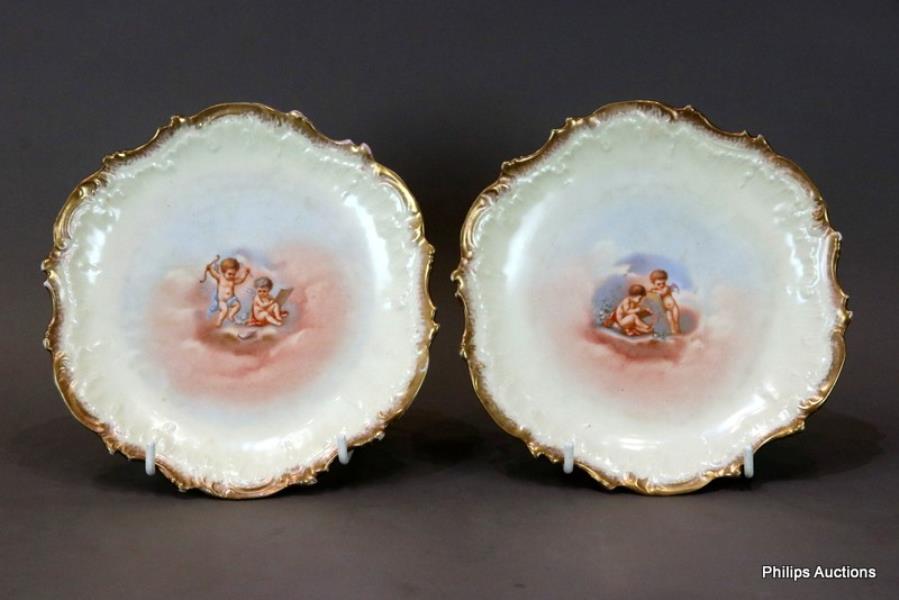 A PAIR OF LIMOGES PORCELAIN CHERUBS PLATES