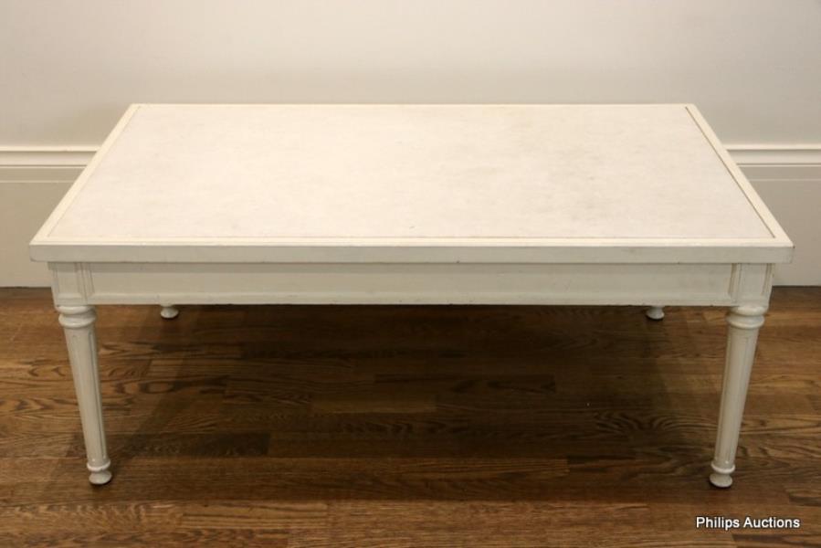 A MARBLE TOP WHITE-PAINTED COFFEE TABLE