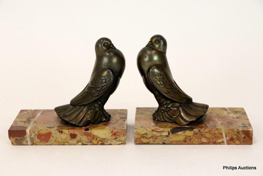 A PAIR OF ART DECO SPELTER DOVE BOOKENDS