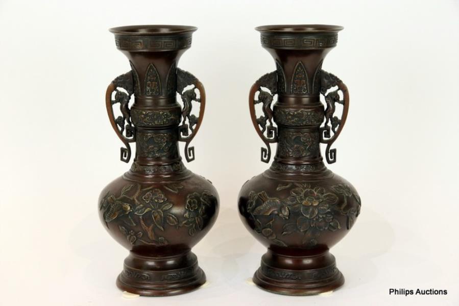 A PAIR OF JAPANESE BRONZE VASES
