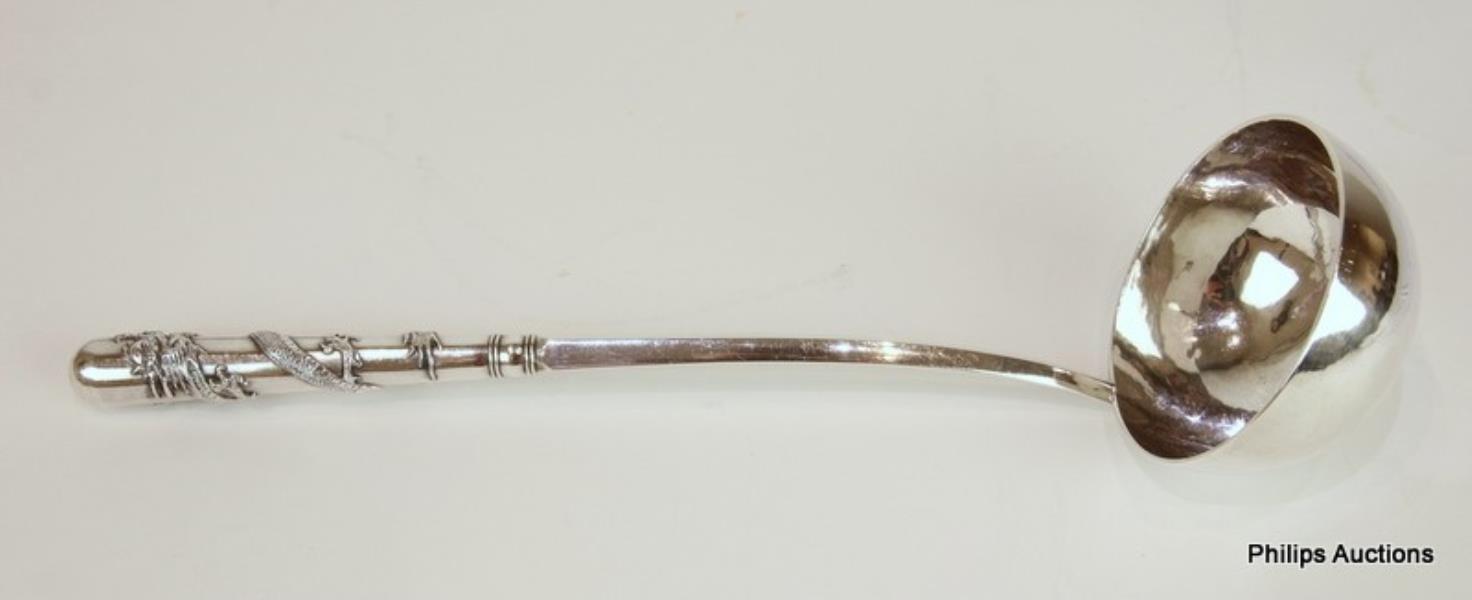 A CHINESE EXPORT SILVER 'DRAGON' LADLE