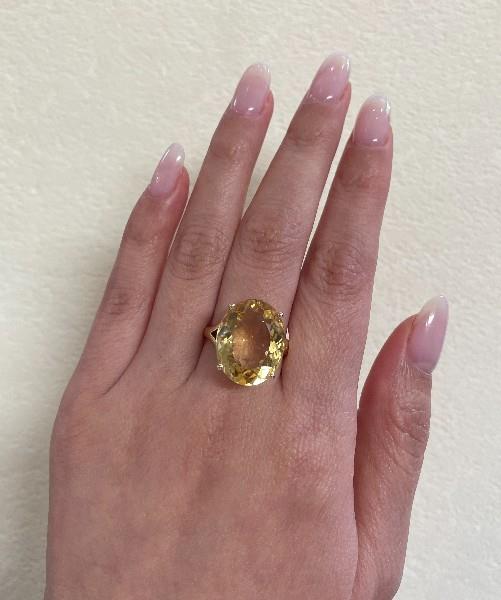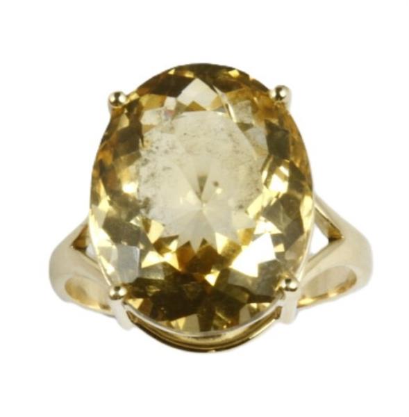 A 14K YELLOW GOLD OVAL CUT CITRINE OF 15.80CT SOLITARE DRESS RING, SIZE: R, TOTAL WEIGHT: 6.2GRAMS