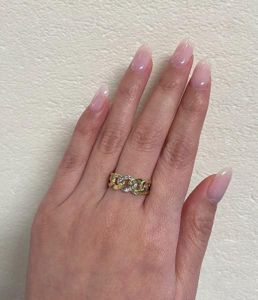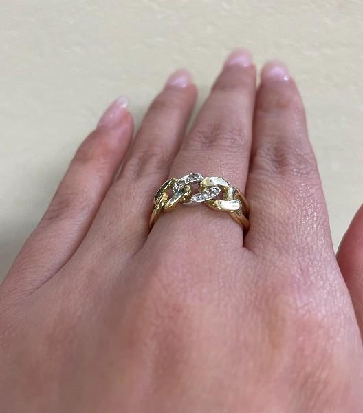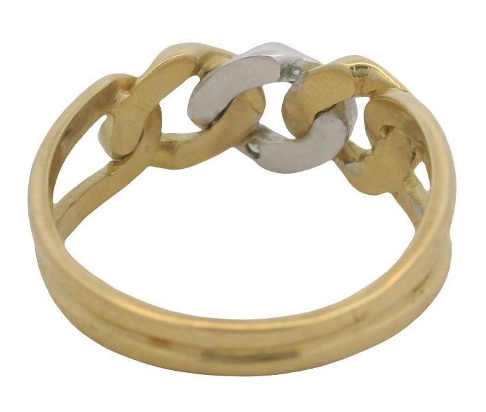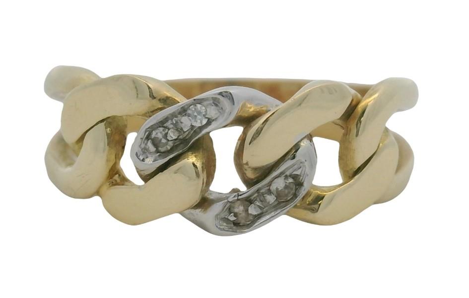 AN 18CT YELLOW & WHITE GOLD DIAMOND DETAILED CHAIN LINK RING, SIZE: O1/2, WEIGHING 4.1GRAMS