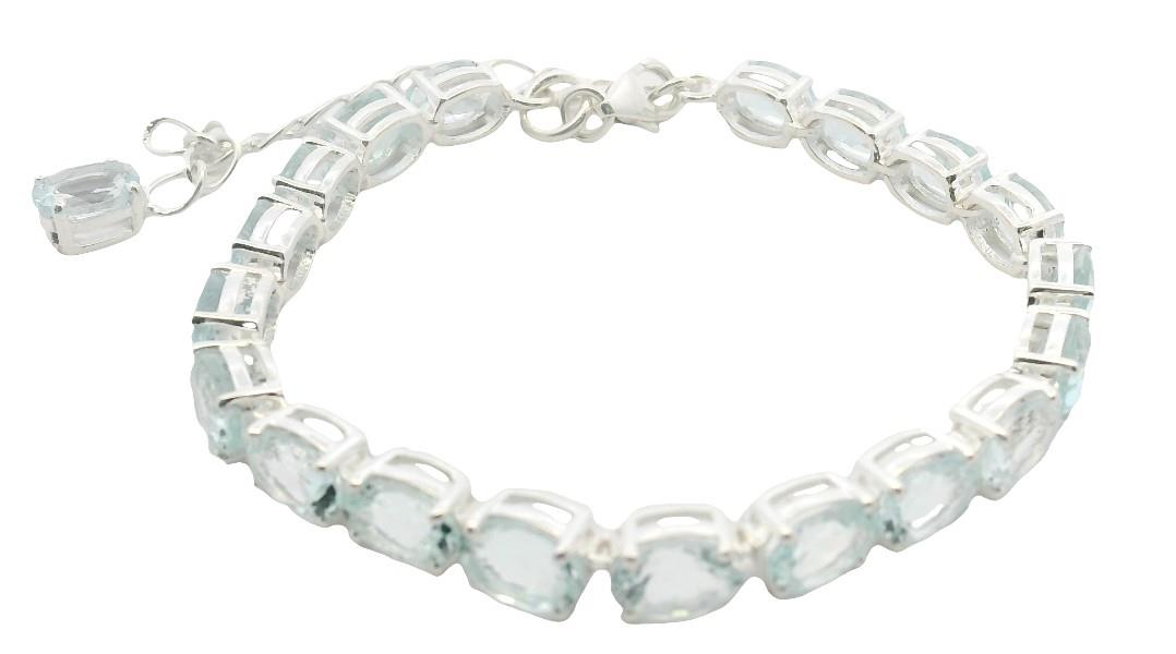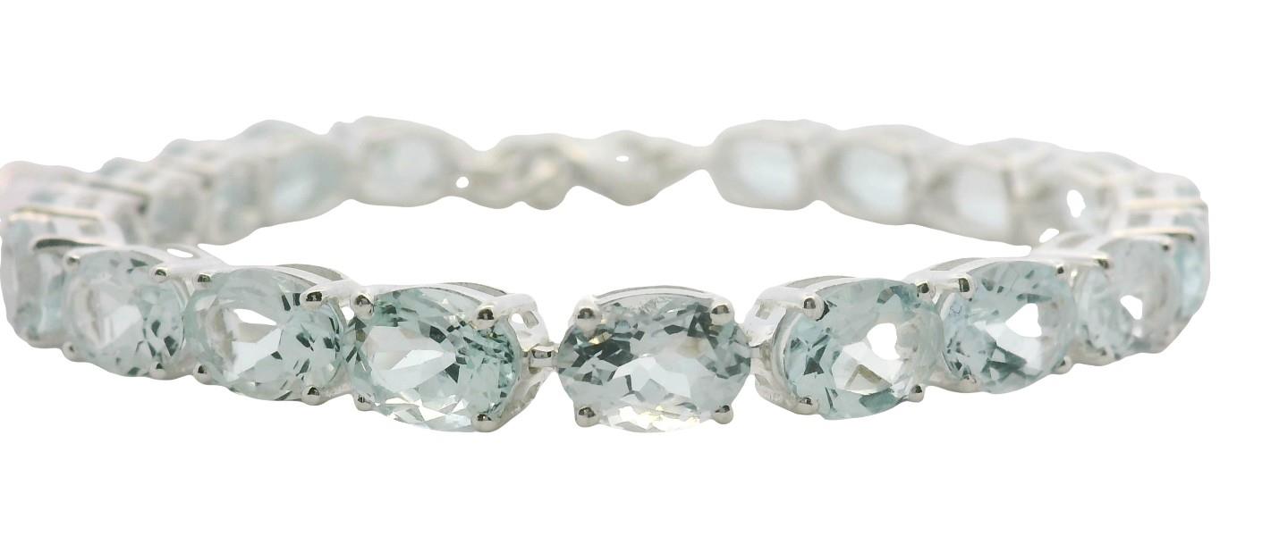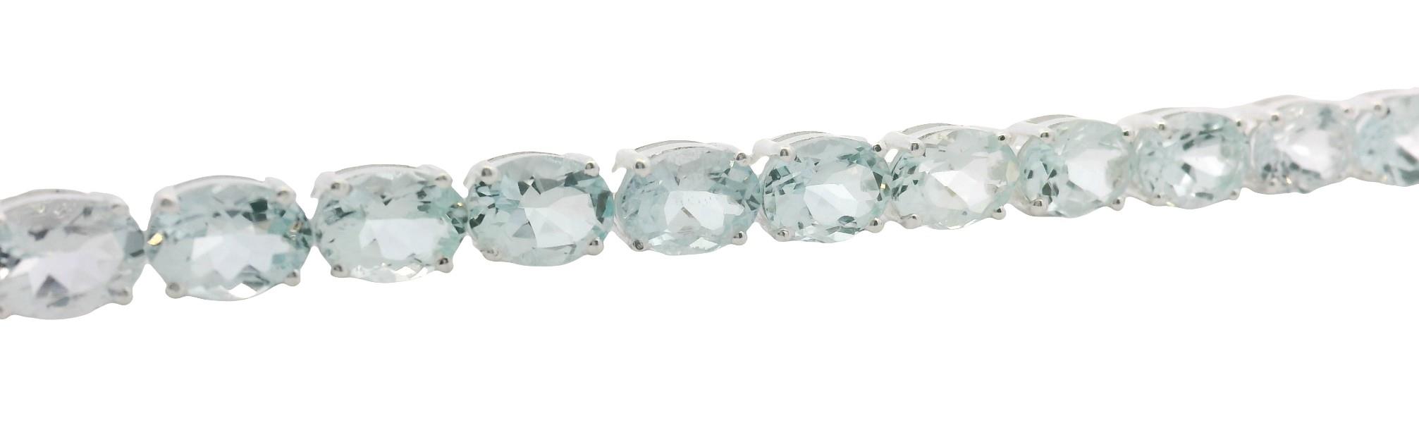 A STERLING SILVER OVAL CUT 15.00ct AQUAMARINE LINE BRACELET, TOTAL WEIGHT 9.7GRAMS