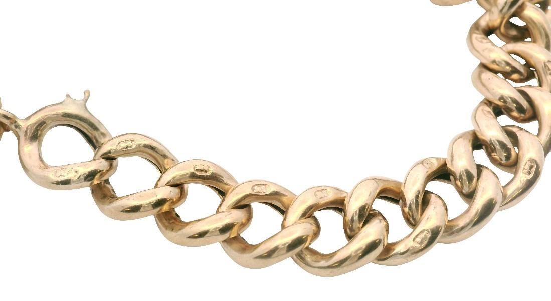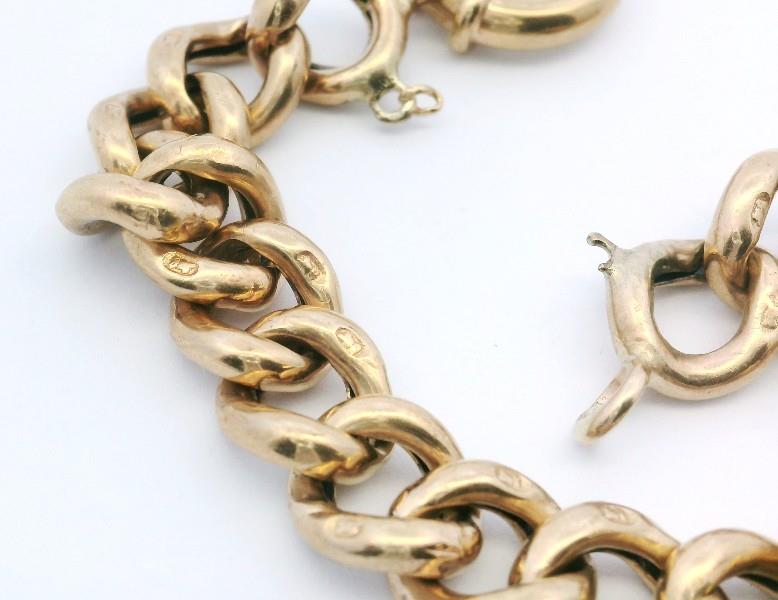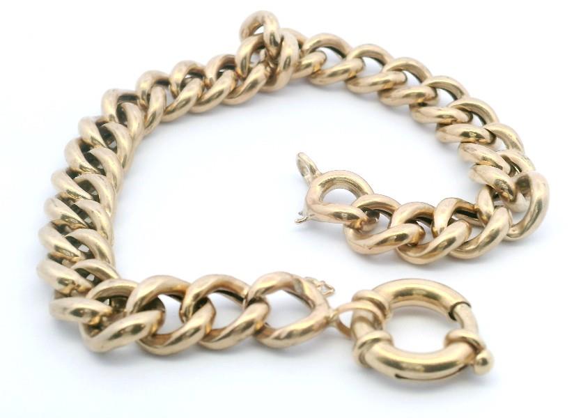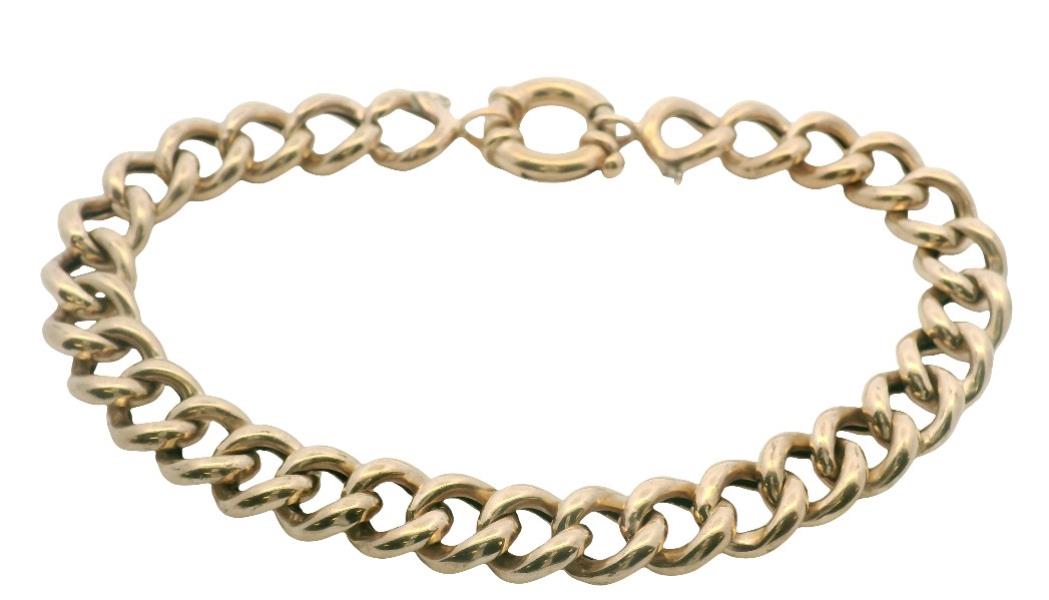 9ct yellow gold curb link bracelet with bolt style clasp.