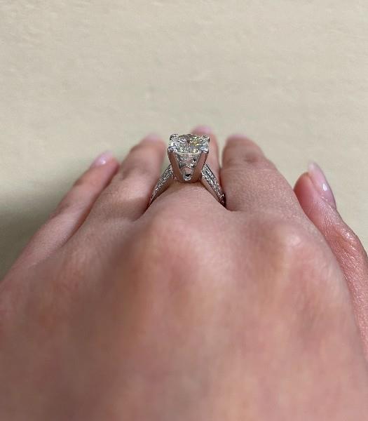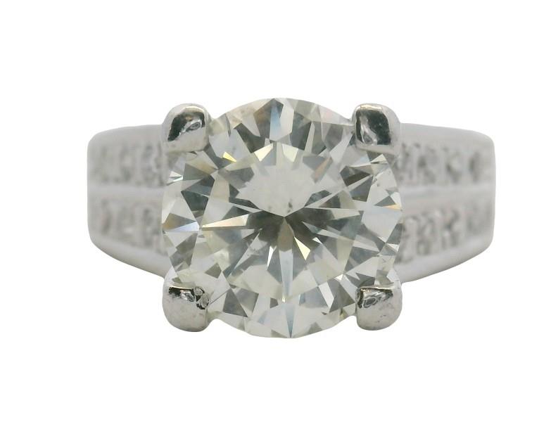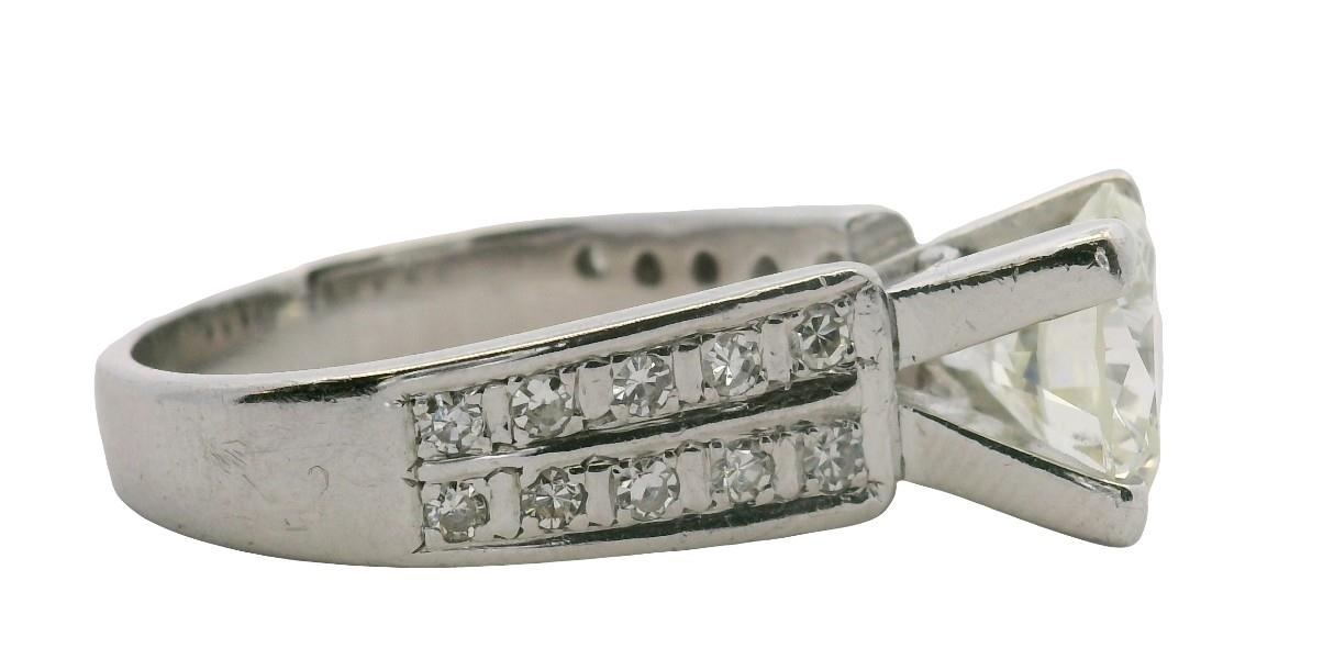 A VINTAGE 14K W.G 70'S BRILLIANT CUT DIAMOND RING OF 2.66CTS, TOTALLING 3.10CT, SIZE: L, 6.3GRAMS