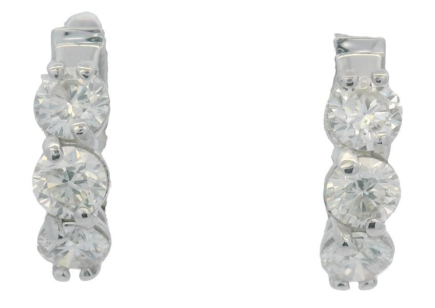 18ct white gold, featuring six round cut Diamonds, totalling 2.10ct, each with three lined to the front, claw set, hinged, pierced post with click closure clasp. Height of earrings: 27mm. Valuation on request. Total Weight: 5.8g