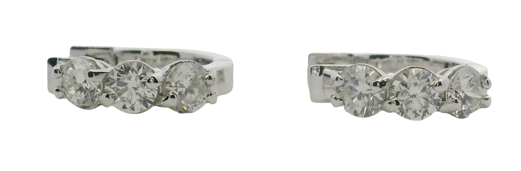 A PAIR OF 18K W.G DIAMOND HOOP EARRINGS, TOTALLING 2.10CT, WEIGHING 5.8GRAMS TOTAL