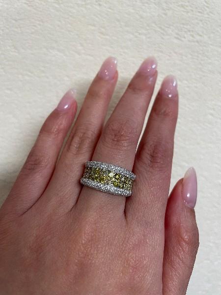 AN 18K W.G YELLOW DIAMOND(1.46CT) & PAVE DIAMOND(1.04CT) BORDER BAND RING, SIZE: M, T.W.: 7.1GRAMS