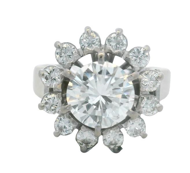 AN 18K W.G VINTAGE STYLED DIAMOND CLUSTER RING TOTALLING 2.05CT, SIZE: L, WEIGHING 6GRAMS