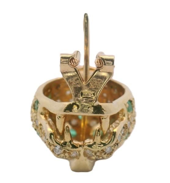 A PAIR OF 14K Y.G STYLISHED DIAMOND, EMERALD & RUBY SET EARRINGS, WEIGHING 14.9GRAMS