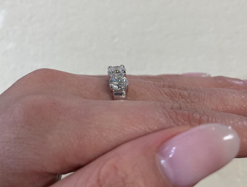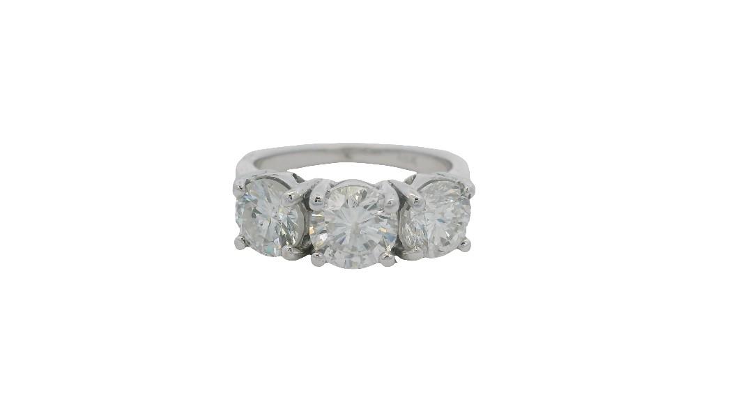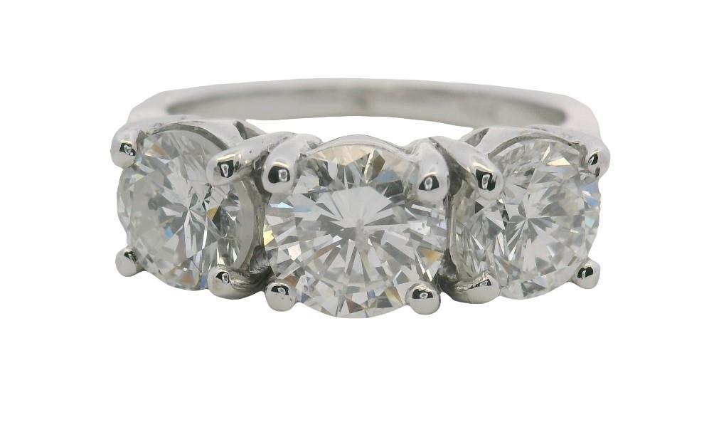 AN 18K W.G DIAMOND TRILOGY RING TOTALLING 3.12CT APPROX, SIZE: M, WEIGHING 5.3GRAMS
