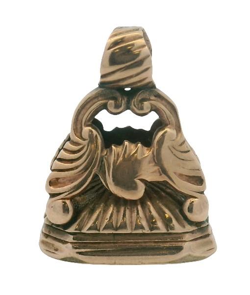 AN ANTIQUE YELLOW GOLD CASED SMOKY QUARTZ SET FOB SEAL, WEIGHING 13GRAMS TOTAL