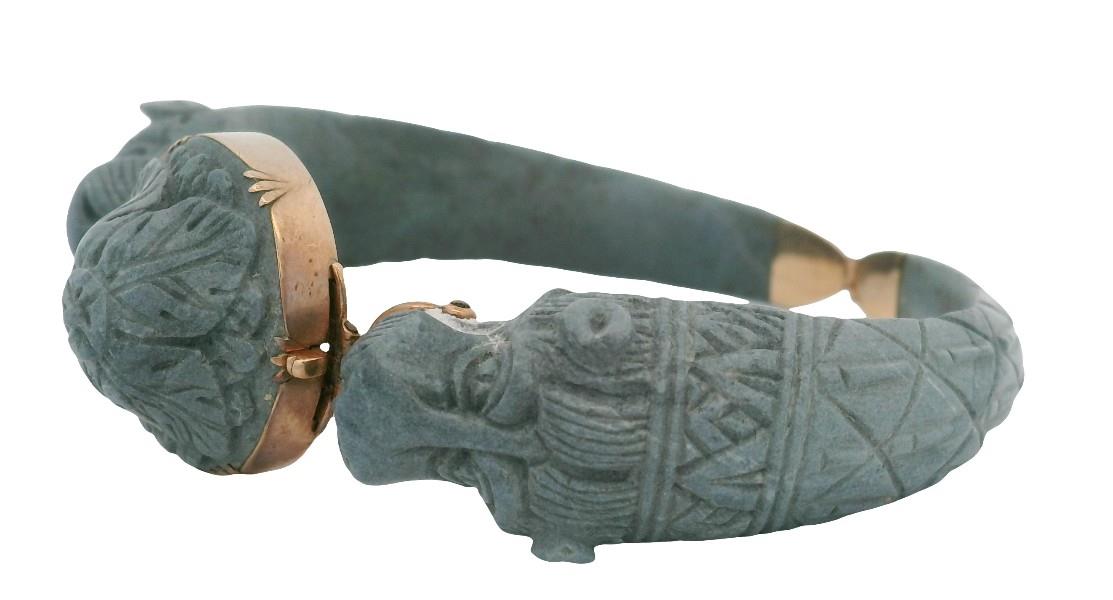 AN IMPRESSIVE VERY EARLY 19TH CENTURY RARE LAVA CAMEO BANGLE OF LION MOTIF WITH 9K FITTING, 23.6GRAM