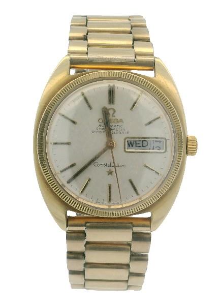 A MID SIZED VINTAGE OMEGA CONSTELLATION GOLD PLATED ON BRACELET