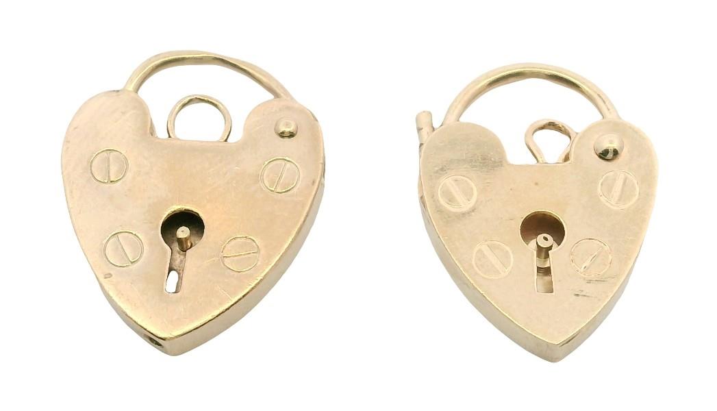 Pair of polished Padlock Style Clasps in 9ct yellow gold with hinges in functioning order, and weighing a combined total of 3.5 grams