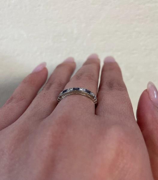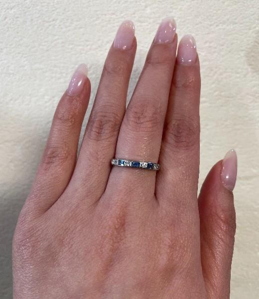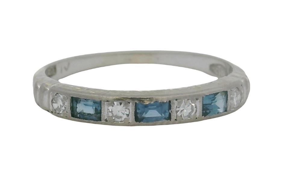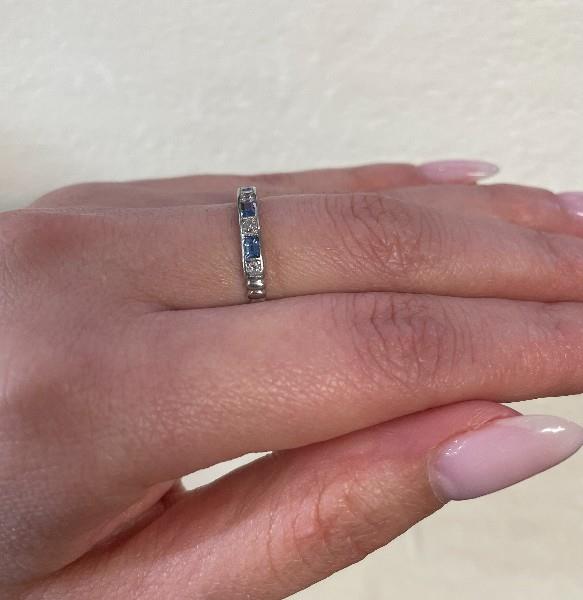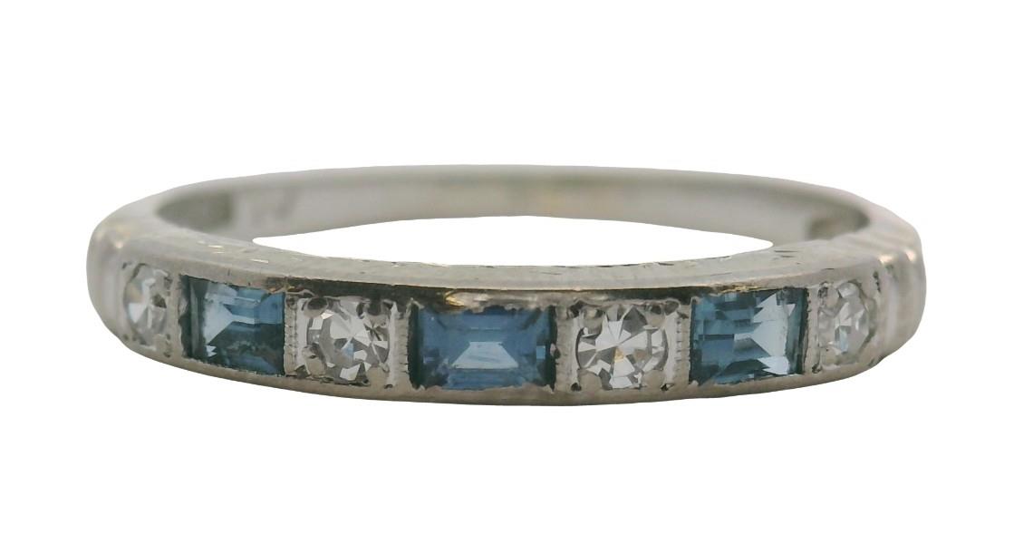 18CT WHITE GOLD SAPPHIRE AND DIAMOND BAND RING T.W. 2.3GRAMS