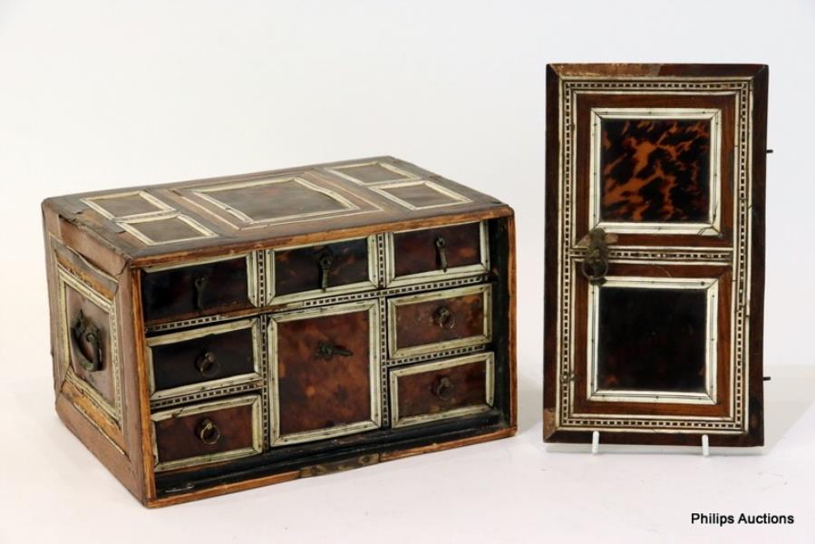 AN INDO-PORTUGESE TORTOISESHELL AND IVORY MOUNTED TABLE CABINET