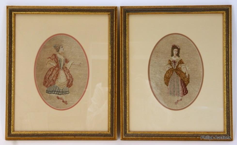 A PAIR OF FRAMED PETIT-POINT NEEDLEPOINTS