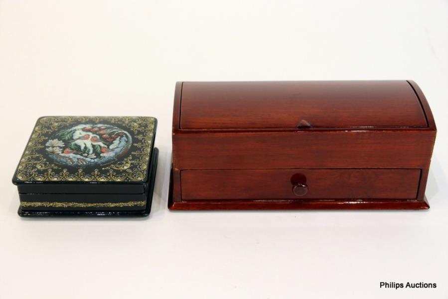 A SIGNED RUSSIAN LACQUER BOX AND A JEWELLERY BOX