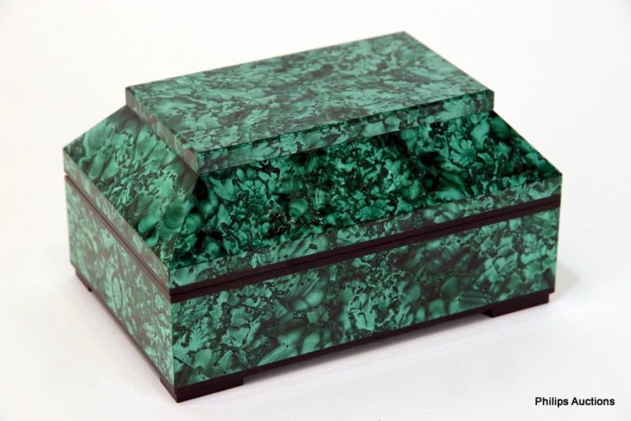 A FINE MALACHITE AND DOLERITE JEWELLERY BOX