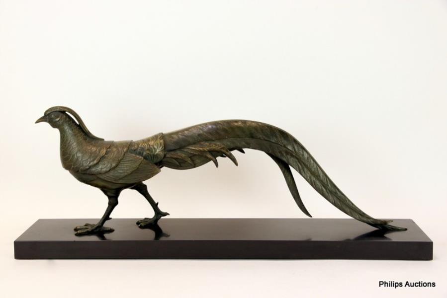 A LARGE ART DECO BRONZE FIGURE OF A PHEASANT