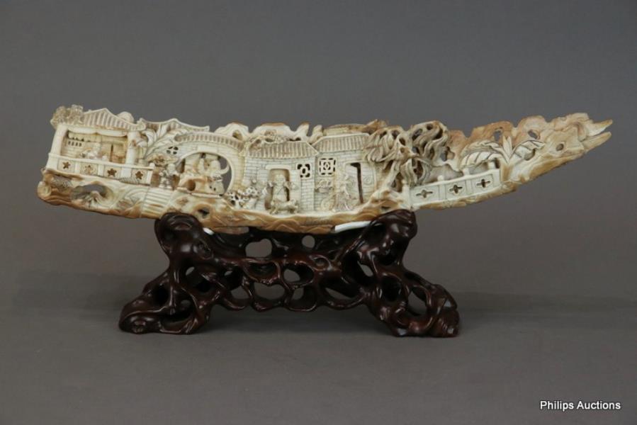 A FINELY CARVED ANTIQUE MAMMOTH TUSK