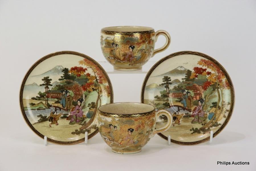 A PAIR OF SATSUMA TEACUPS AND SAUCERS