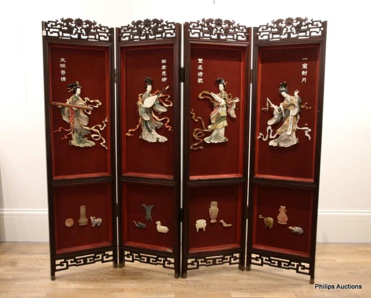 A CHINESE FOUR-PANEL FOLDING SCREEN