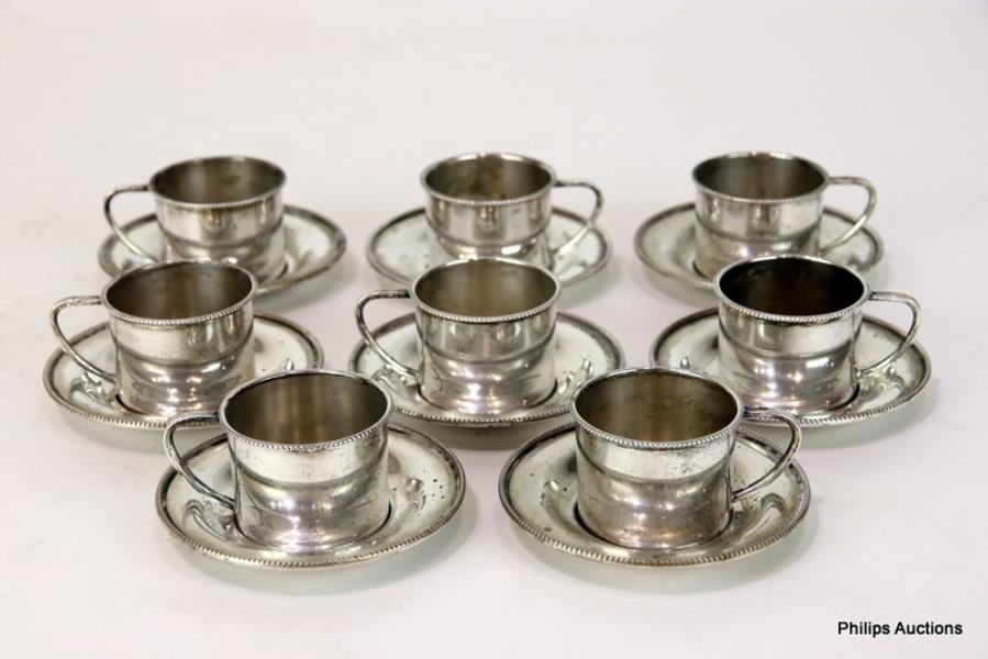 A CZECHOSLOVAKIAN .800 SILVER SET OF EIGHT CUPS AND SAUCERS