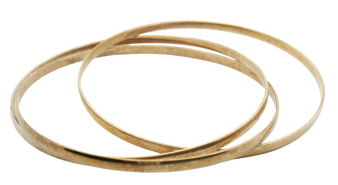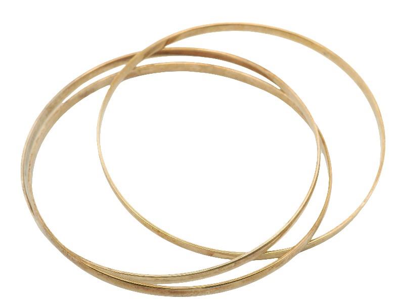 9ct yellow gold, stamp 375, presented as three polished interconnected bangles, with measuring inner circle diameters of 65mm each, semi rounded exterior profile, flat inner surface, each band width measuring 3mm. Total Weight: 18.5g