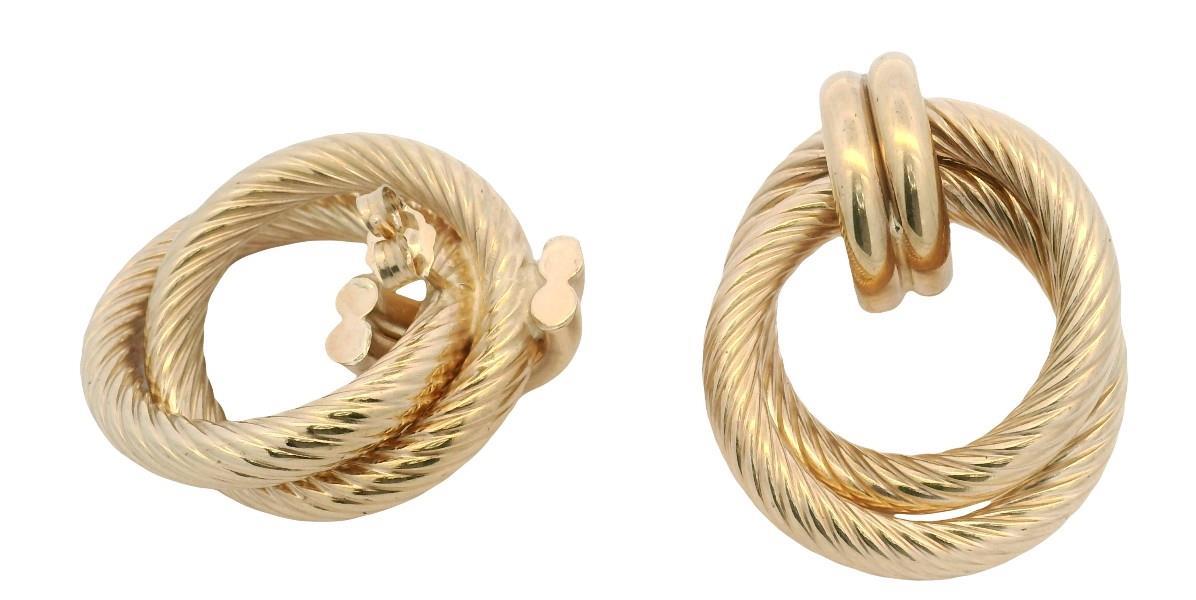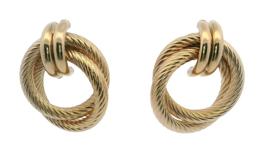 A 9CT YELLOW GOLD PAIR OF TWISTED KNOT STYLE EARRINGS, T.W. 7.3GRAMS