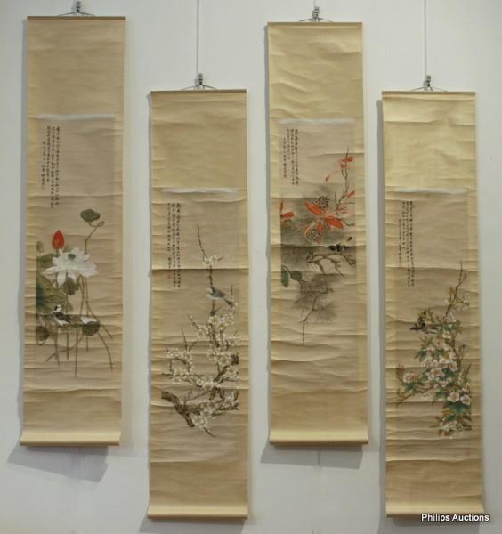 FOUR CHINESE WATERCOLOUR SCROLLS