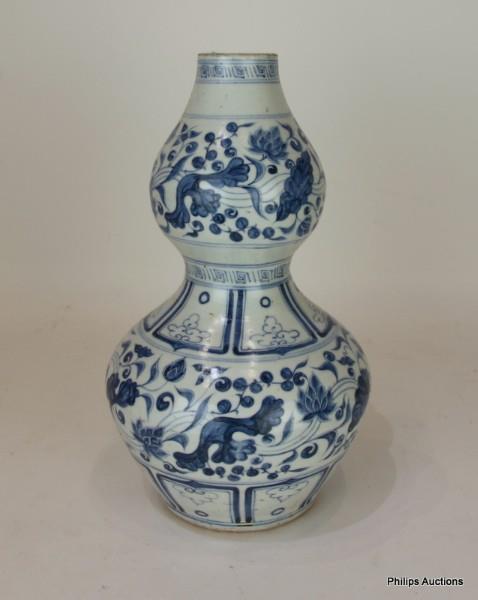 A MING-STYLE BLUE AND WHITE DOUBLE GOURD 'DRAGON' PORCELAIN VASE