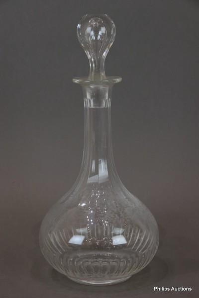 The decanter with slice-cut borders to the neck and body, with its original stopper.