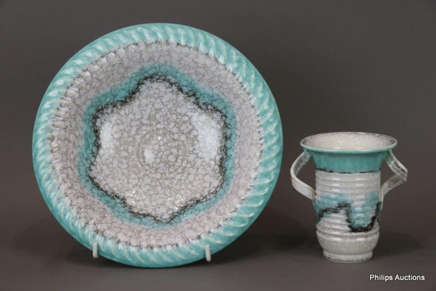 A CZECH ART DECO POTTERY BOWL AND A VASE