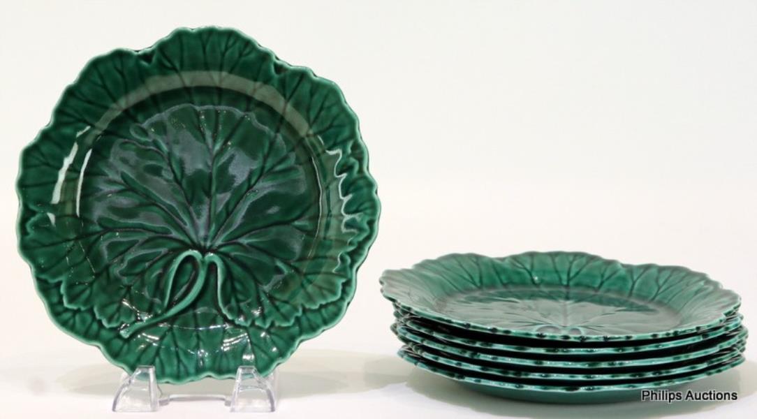 A SET OF SIX WEDGWOOD MAJOLICA CABBAGE LEAF PLATES