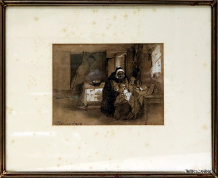 Ink and guache signed lower left and note verso from atrist "The sketch in sepia is my work. The title is Forgiven, Yours Truely Thomas Faed 24a Cavendish rd St Johns Wood