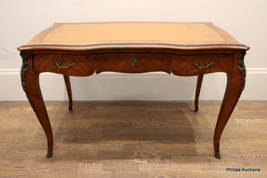 A LOUIS XV STYLE TULIPWOOD BUREAU PLAT