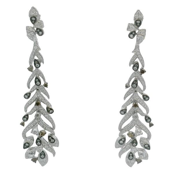 18ct white gold, presented as a leaf style vertical drop, semi flexible, detailed by pear and multi size round brilliant cut Diamonds, totalling 1.99ct, claw and bead set, fitted to pierced post. Height of earrings: 6.1cm. Total Weight: 15.5g
