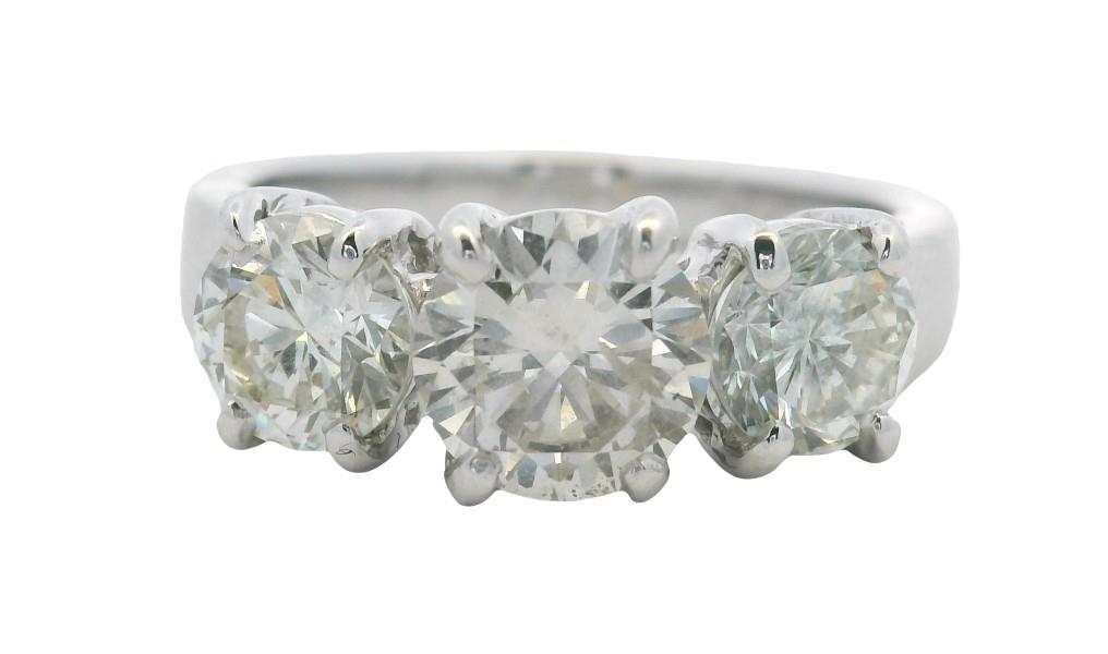 AN 18CT GOLD TRIOLOGY ROUND CUT DIAMOND RING, TOTALLING 2.27CTS, SIZE L1/2, 4.6GRAMS