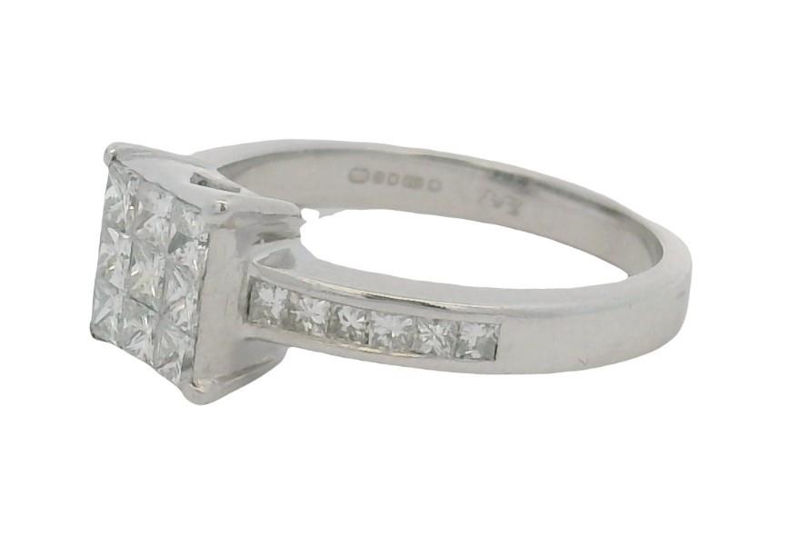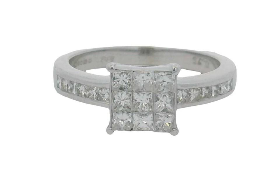 AN 18CT GOLD ILLUSION SET PRINCESS CUT DIAMOND CLUSTER RING, 0.84CTS TOTAL, SIZE L1/2, 4.3GRAMS