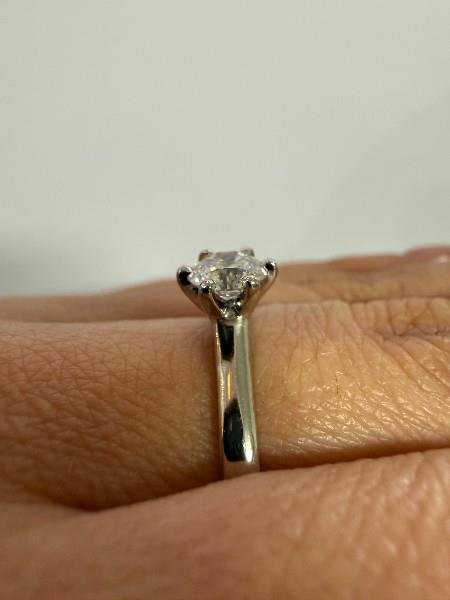 Platinum, handcrafted, stamped, presented as a classic upswept solitaire ring featuring a central GIA certified brilliant cut diamond of 0.70ct, claw set in six claws, flanked by a smooth and tapered solid platinum band. Ring Size N.